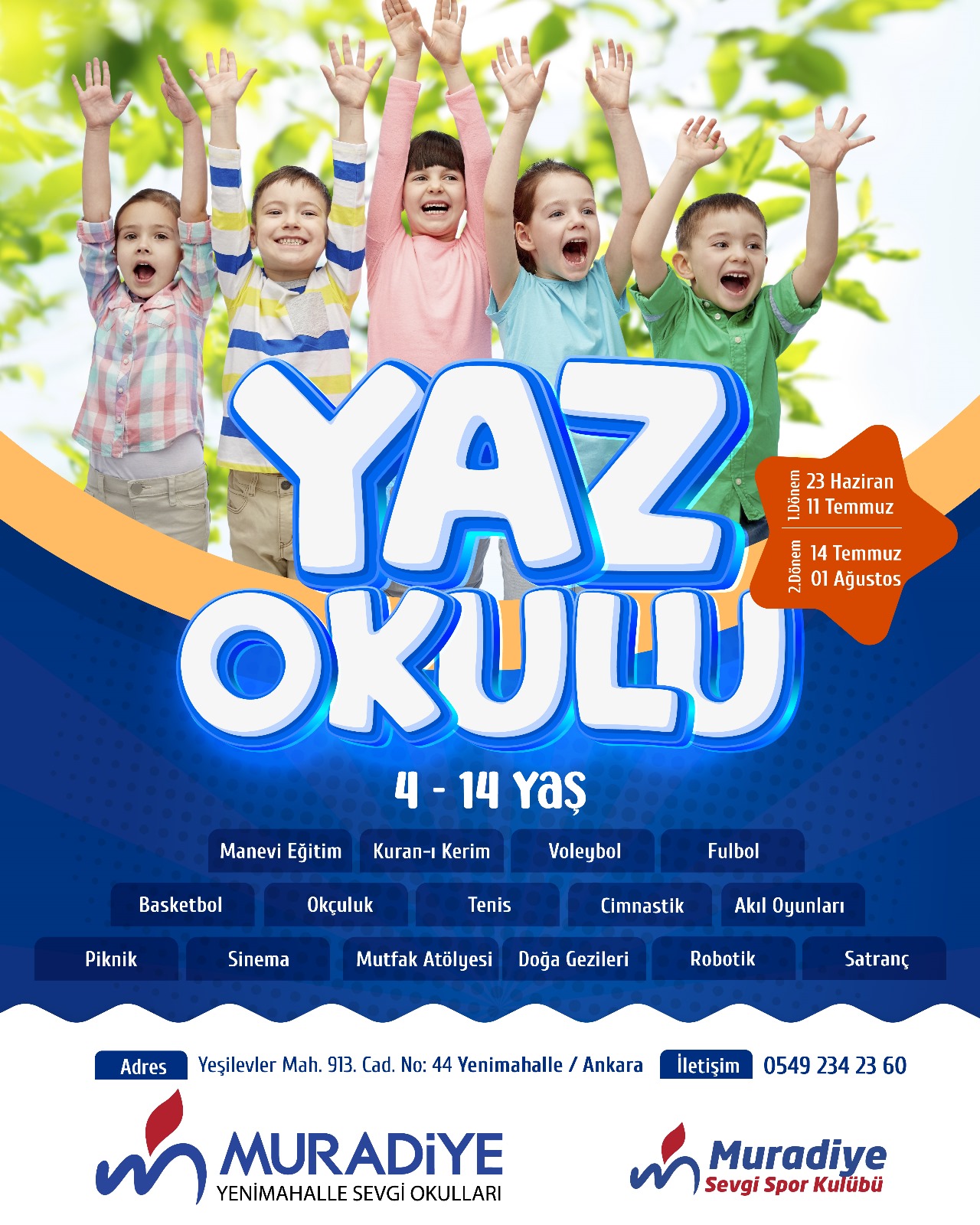 MURADİYE YENİMAHALLE SEVGİ OKULLARI YAZ OKULU BAŞLIYOR! Değerli Velilerimiz, Çocuklarımızın hem eğlenceli hem de eğitici bir yaz geçirmesi için dopdolu bir programla Muradiye Sevgi Okulları Yaz Okulu başlıyor! Yaz Okulu Dönemleri: 1. Dönem: 23 Haziran – 11 Temmuz 2. Dönem: 14 Temmuz – 1 Ağustos Yaş Grubu: 4 – 14 yaş arası tüm çocuklarımız davetlidir. […]